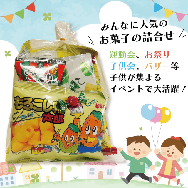 バラエティーに富んだお菓子の詰合せで、子供会やお祭り、PTAバザーなど、お子様が集まるイベントを盛り上げましょう♪