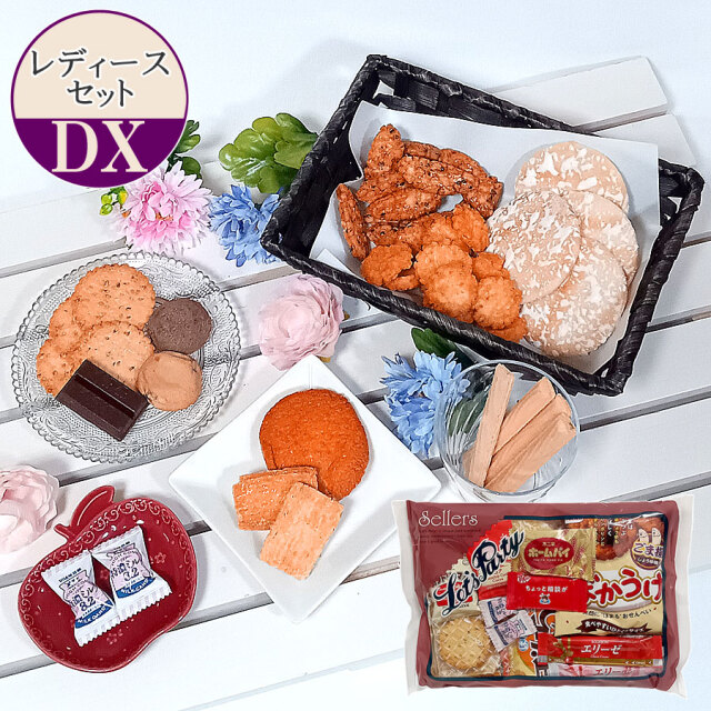 ご旅行や親睦会など、さまざまな場面で大活躍♪お酒の苦手な女性に大人気のお菓子セット「レディースセットDX」です。